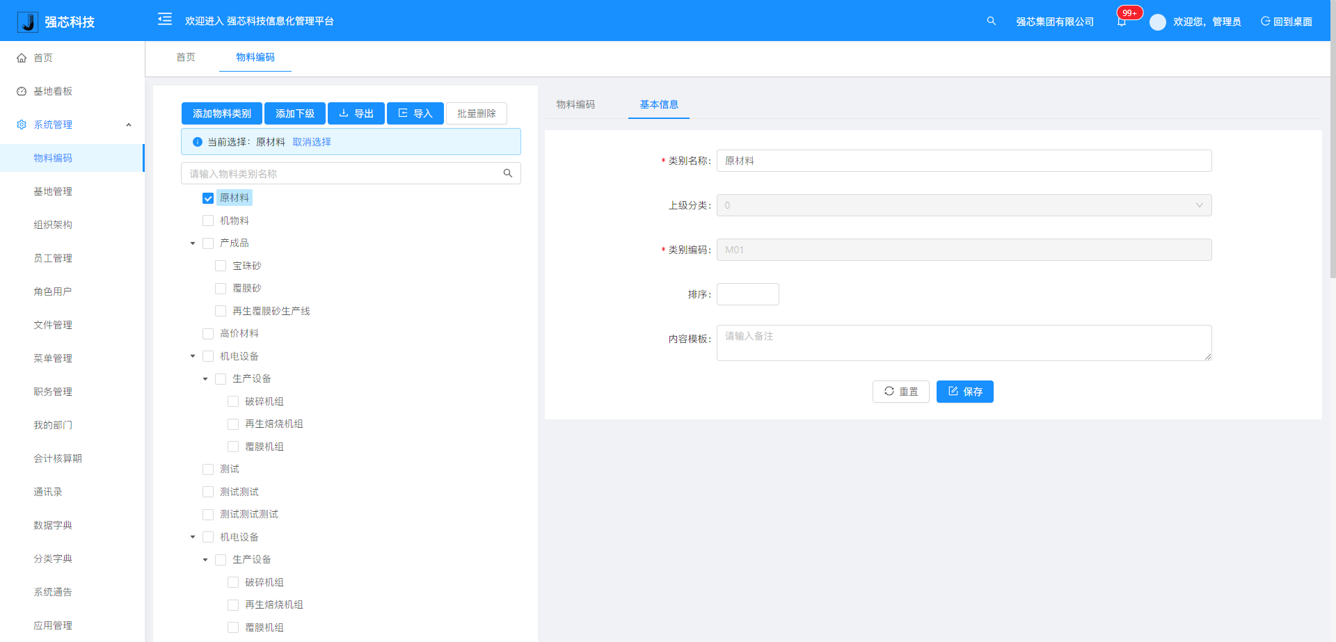 系統(tǒng)設(shè)置:物料編碼、基地管理、組織架構(gòu)、員工管理、角色用戶、菜單管理、職務(wù)管理、會計(jì)核算期、授權(quán)設(shè)置